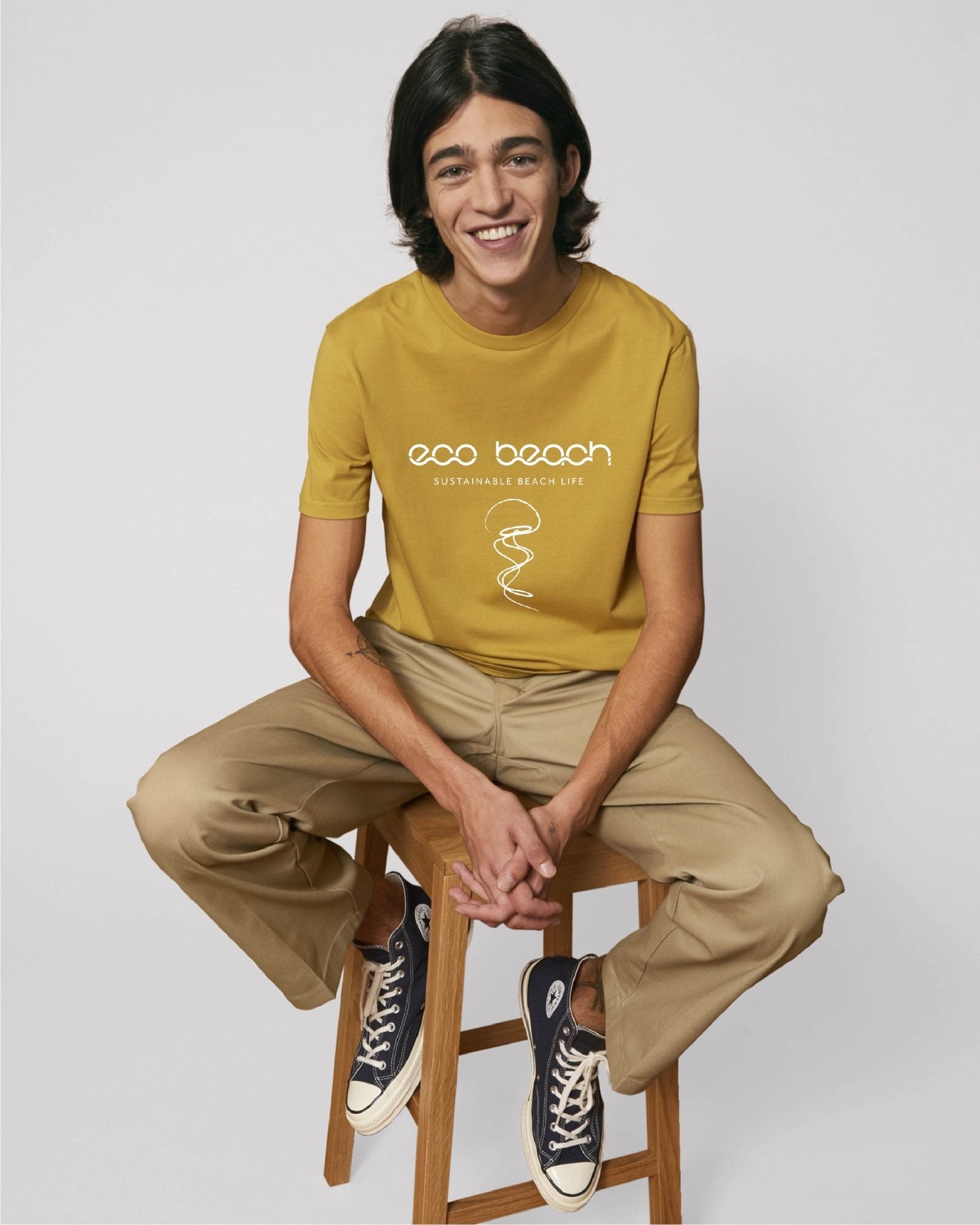 This classic T goes well with everything. 100% organic cotton that looks and feels great. The colours are fresh and all printed with 100% water based dyes and inks. It is built to last with double stitching along the hems. Its cotton fibres are GMO-free and it takes up to 70% less natural resources (like fresh water) during manufacture than standard cotton. No fertilisers or pesticides are used to grow the cotton so soil is kept healthier, more fertile and with higher humidity. Any cotton waste from manufacture is recycled.